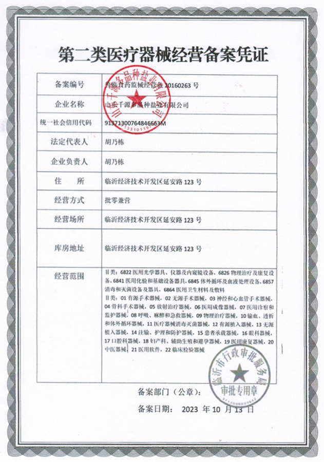 第二類醫(yī)療器械經(jīng)營備案憑證